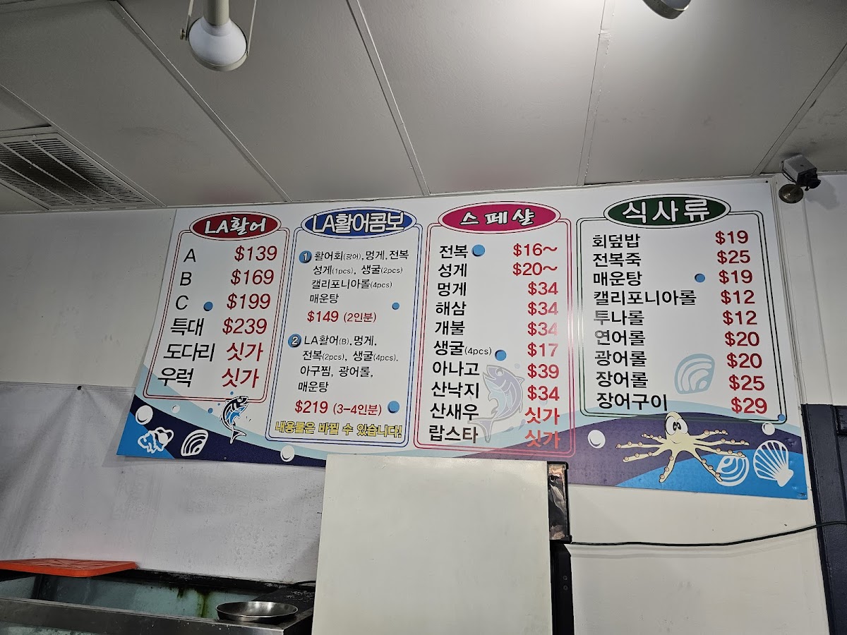 La Sashimi’s menu offers a vibrant exploration of fresh seafood that consistently impresses. The Hoe stands out as a signature dish, showcasing pristine slices of raw fish that melt on the palate with each bite. For those seeking something heartier, the Agwi-Jjim delivers a rich, spicy experience, perfectly balancing the depth of flavors in its tender, braised monkfish. The Squid dish surprises with its tender texture and subtle seasoning, making it a satisfying option for both seafood enthusiasts and newcomers alike. A true highlight is the 모듬 활어 세트, an assorted fresh fish platter that captures the essence of the restaurant’s dedication to quality and presentation, making it ideal for sharing. Each dish is thoughtfully prepared, reflecting a balance between traditional techniques and fresh, high-quality ingredients, resulting in a menu that is both approachable and memorable. Overall, La Sashimi offers a refined seafood experience where standout items like Hoe, Agwi-Jjim, Squid, and 모듬 활어 세트 leave a lasting impression for anyone seeking authentic Korean-style seafood in Los Angeles.